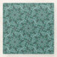 Elegant Teal Floral Pattern with Leaf Mandala Glass Coaster