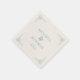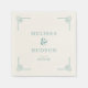 These wedding napkins feature a minimalist and elegant design with a clean white background that highlights the soft teal typography. The layout is symmetrical, showcasing two names in uppercase serif letters connected by an ornate ampersand, creating a balanced and sophisticated look. Delicate geometric patterns adorn each corner, adding subtle sophistication without overwhelming the simplicity of the composition. Perfect for formal occasions, these napkins convey refined simplicity and understated luxury, making them ideal for weddings or upscale events.