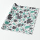 Elegant Teal Gray Brown Clematis Floral Pattern Wrapping Paper