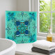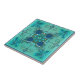 An artistic tile for bathroom or kitchen featuring a fantasy geometric design in teal and mint green colors.