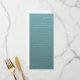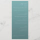This elegant wedding menu features a minimalist design with a soothing teal background and crisp white text, creating a sophisticated and inviting atmosphere. The layout is clean and structured, with sections for Starters, Salad, Main Course, and Dessert clearly defined in bold sans-serif headers, while the item descriptions are presented in an easy-to-read serif font. Customizable placeholders at the bottom allow for personalization with names and dates, making it perfect for formal events. The overall style is modern and refined, ideal for couples seeking a chic and uncluttered aesthetic for their special day.