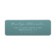 These return address labels feature a simple, elegant design with centered text on a solid teal background. The color palette includes a calming teal hue paired with crisp white text for a clean contrast. The typography combines a sophisticated script font for the names and a clear sans-serif font for the address and contact details, creating a balanced and professional look. Perfect for formal invitations or correspondence, these labels convey sophistication and grace through their minimalistic style and ample negative space.