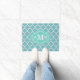 Elegant Teal Quatrefoil Pattern Custom Monogram Doormat