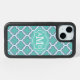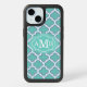 Elegant Teal Quatrefoil Pattern Custom Monogram iPhone 15 Case