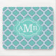 Elegant Teal Quatrefoil Pattern Custom Monogram Mouse Pad