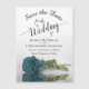 These beautiful magnetic cards are the perfect way to let your friends and family know to save the date for your upcoming wedding. They feature a romantic design with a single long stemmed teal or turquoise colored rose reflecting in a pool with waves and ripples. Classic & elegant, the simple design includes lacy script calligraphy lettering.