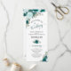 Elegant Teal Roses Boho Watercolor Floral Wedding Program