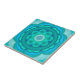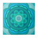 Tile with a floral geometric design in teal, blue and turquoise. Perfect for a bathroom or kitchen.