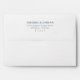 This wedding envelope features a minimalist design with centered text on a clean white background, creating an elegant and modern look. The muted teal blue color palette adds sophistication, while the serif font ensures readability and visual consistency. With ample negative space, this design emphasizes clarity and simplicity, making it perfect for couples seeking a refined and professional aesthetic for their special day.