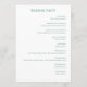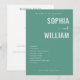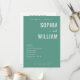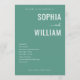 This wedding program features a minimalist and elegant design with a solid teal background, creating a sophisticated and modern look. The layout is clean and organized, with the names prominently displayed in bold white letters and a cursive "and" adding a touch of charm. The ceremony details are listed in a simple sans-serif font, ensuring clarity and readability. Perfect for couples seeking a stylish yet understated aesthetic, this program sets the tone for an intimate and memorable celebration.