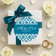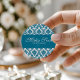 Elegant Teal White Damask Wedding Favor Classic Round Sticker