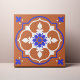 Elegant Terracotta and Blue Flower Azulejo Ceramic Tile