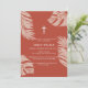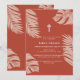 Elegant Terracotta Boho Leaves Cross Baptism Invitation