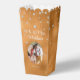 Make your wedding or birthday celebration extra special with these custom popcorn favor boxes. Featuring a stunning terracotta foil background adorned with faux glittering diamonds, these favor boxes add a touch of elegance and sparkle to any event. Personalize with the couple's last name, special date, and a cherished photo on the front. On the back, guests can easily find a QR code and text template directing them to upload their wedding pictures and videos to a dedicated website. These boxes are perfect for wedding snacks, birthday treats, and any occasion that deserves a little extra glam.