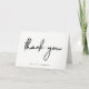 This classic and elegant card says "thank you" in modern, black script on a clean white background.