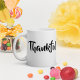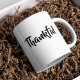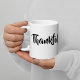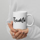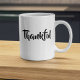 A simple budget-friendly coffee mug. Featuring "Thankful" in an elegant script font, created as an affordable thanksgiving gift to give to your family and friends at the thanksgiving holiday table when you all are feasting on turkey and drinking wine. Show them you're thankful to have them as family and friends.