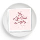 Elevate your wedding celebration with these enchanting rose gold calligraphy napkins, featuring the romantic phrase "the adventure begins" in graceful script.