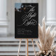 This fabulous rehearsal dinner welcome sign features elegant, flowing calligraphy that reads "The Night Before," setting a romantic and heartfelt tone for the special evening. Its bold design immediately immerses guests in the excitement of the upcoming wedding, just one day away. Designed on sleek, black glossy acrylic, this gorgeous sign is a true reflection of the couple’s sophisticated and distinctive sense of style. The deep, lustrous black surface exudes elegance and modern luxury, while the crisp white typography contrasts beautifully, creating a striking visual that effortlessly captures attention. This thoughtfully chosen combination of materials and design elements not only highlights the couple’s unique taste but also serves as a symbol of their refined aesthetic - a perfect balance of classic elegance and modern refinement. The bold yet minimalist look, whether placed at the entrance or within the event, makes a testament to the couple's elevated approach to even the smallest details, setting the tone for a wedding that’s both sophisticated and unforgettable.