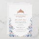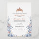 Elegant Tiara Gold Blue roses Quinceañera Foil Invitation