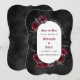 Dark and moody Save the Date card with Till Death Do Us Part saying, dark red roses, bats and spider webs. Has a smoky black watercolor background. Blackletter typography adds to the gothic feel of the announcement. See our coordinating items as well.