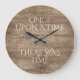 Vintage elegant One Upon A Time There Was Time quote text on a brown colored faux wooden background written in a very stylish calligraphy script font. Classic retro chic, elegant yet simple basic design for the artistic home décor fashion designer, popular hip trendsetter, whimsical cabin style motif lover.
