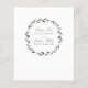 A details sheet to enclose with your wedding invitation to offer additional information to your guests that is not on your invitation. The invitation is a traditional and elegant square wedding invitation featuring a watercolor painted olive branch wreath with your first and middle names in a classic wedding script, centered in the wreath. The parents of the bride and groom's full names without titles, are featured at the top requesting the honor of your guests' presence at the marriage of their children. Your last names appear on the back in a smaller wreath with the venue address.