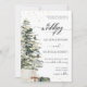 Boho Rustic Christmas Tree Lights Winter Holiday Wedding Invitation. Bohemian Style Drop Botanicals Invitation with Elegant and Simple boho Rustic Tree and Pine Botanicals in Hand-printed Watercolor. The Sage Green background color is gorgeous for boho weddings and Christmas weddings. Simple, printable invitation for holiday and winter weddings.