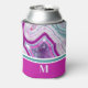 Chic Modern Teal Fuchsia Agate Stone Monogram Can Cooler. Agate crystals and geodes continue to be a favorite trend! This print features and up close image of a teal or turquoise and purple pink or fuchsia geode stone, complete with little crystals and white banding. Accented with vibrant color blocking to give it a modern and trendy look. Add your initial to make it your own.