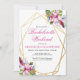 Soft pink and purple tropical watercolor flowers within a gold double geometric frame feature botanical and festive flourishes. Customize this bachelorette weekend getaway invitation with your own colors and fonts or keep this popular typography as it is for your convenience. MIx and match with other items in this beautiful wedding collection.