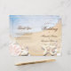Ideal for a tropical beach wedding, this folded program card by Mylini Design is fully customizable to suit your needs. The beautiful card features a tropical beach scene complete with crystal-clear waters. With ample space for your wedding program, the card provides a handy information guide for your guests. The foldable design adds an elegant and sophisticated touch to your big day. Whether you’re planning a small or large beach wedding, you cannot go wrong with this stunning tropical beach wedding program card.