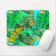 Elegant tropical green leaves yellow blue pattern mouse pad