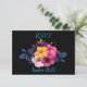 Get your guests to RSVP for your big day with this vibrant and elegant design. Set against a dark background to showcase the vibrancy of the floral design. All fonts and wording can be customized. Background and font colors can also be customized.