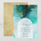 Elegant Turquoise and Gold Flowing Ink Wedding Invitation