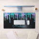 Elegant Turquoise black Unicorn Drips monogram Desk Mat