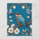 Elegant Turquoise Kingfisher Bird Floral Postcard