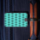 An elegant turquoise and black pattern decorates this fun luggage tag. Customize this luggage tag by changing the monogram letters to suit your needs. The design is from original art.