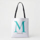 Elegant Turquoise Monogram Name Tote Bag