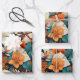 Elegant Turquoise Orange Flower Pattern Floral Wrapping Paper Sheets