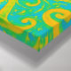 This elegant peacock canvas art will brighten up your home décor with the bird in colors of turquoise and blue on a yellow patterned background. Image generated with AI.
