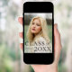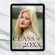 A photo graduation announcement designed by Stacey Meacham featuring a large classic class of type and graduation year.