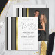 Plain white envelopes are included with paper invitations and will come to fit the invitation size you select. If you don’t need the envelopes, you may choose to not receive them by selecting the dropdown below "Envelopes" and choosing "None." If you’d like to have a design on your envelopes, you can browse all of these available envelopes to find the design that complements your Elegant Typography Black White Gold Stripe Wedding Invitation.