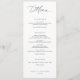 Classic yet contemporary, this black and white wedding dinner menu features elegant modern calligraphy paired with refined typography for a luxurious, timeless look. The simple layout and balanced spacing create a sophisticated presentation that highlights each course beautifully. Perfect for formal receptions or black-tie celebrations, this design adds an understated sense of style and grace to your wedding table décor.