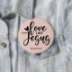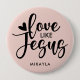 This modern, Christian name tag pin features stylish typography reading, "Love like Jesus" in black, with a little heart accent. A great reminder to love Jesus, as well as show His love to others. Great for women and teen or tween girls! A text template is included for simple personalization - makes a great name tag for church events! The background color can be customized to any color you'd like.