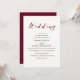 Having your Elegant Typography Marsala Wedding Invitation match the theme of your party is a great detail that your guests will appreciate. The thoughtfulness of a consistent party theme is often appreciated and can show your guests that you can host a cohesive event.