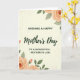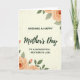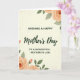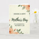 This greeting card centers on a heartfelt Mother’s Day message, arranged in a clear serif-style font for the main lines with a flowing cursive accent that draws attention to the key words ❤️. The text sits neatly in the middle of a creamy off-white background, giving it plenty of breathing room and an intimate, close-to-the-heart feel. Soft floral clusters frame the message from the upper and lower corners, like a gentle embrace around the words. The flowers look like watercolor blooms with ruffled petals in a peachy orange tone, paired with muted sage-green leaves that tilt inward as if leaning closer. A subtle paper-like texture runs across the background, adding a cozy, slightly vintage touch without distracting from the lettering. The lighting feels diffused and calm, letting the warm peach and soft green colors mingle smoothly for a tender, caring mood 🌼. In the top and bottom corners, the peach-orange blossoms and sage leaves form a delicate border around the centered text.