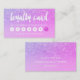 A modern, stylish loyalty card for hair and makeup artist business card with modern hand lettering style brush typography in white on a trendy faux purple pink glitter trendy and elegant background. If you need any customization, don't hesitate in contacting me