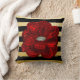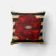Elegant Unique Black Gold Bloomed Red Rose Throw Pillow