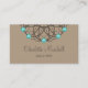Hand out your business card with a stylish vintage elegant design including turquoise faux digitally printed rhinestone jewels and geometric design. A smart two side design with your core information on the flip side and your name highlighted and featured on the front.
