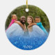 Elegant Unto Us Scripture Blue Glitter 2 Photo Ceramic Ornament