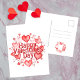 This customizable Valentine's Day postcard is a delightful way to express your love and affection. The design features bold, red text that reads "Happy Valentine's Day," which is fully customizable to add your personal touch. Surrounding the text is a charming arrangement of red and pink hearts, creating a vibrant and festive atmosphere. The hearts are intertwined with delicate, swirling vines and small leaves, adding an elegant and whimsical touch to the overall design. This postcard is perfect for sending heartfelt messages to loved ones, making it a thoughtful and memorable keepsake.